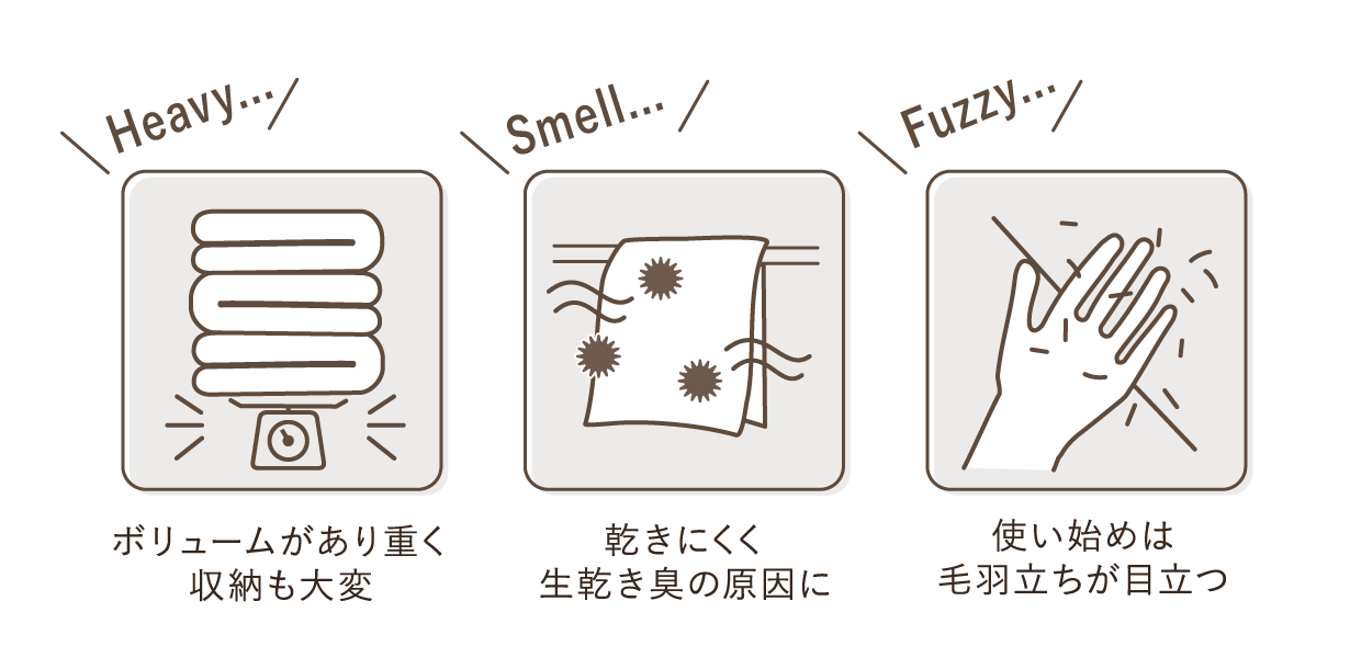 バスタオルよりワンサイズ小さいと収納もコンパクトにできるのが嬉しいですよね!