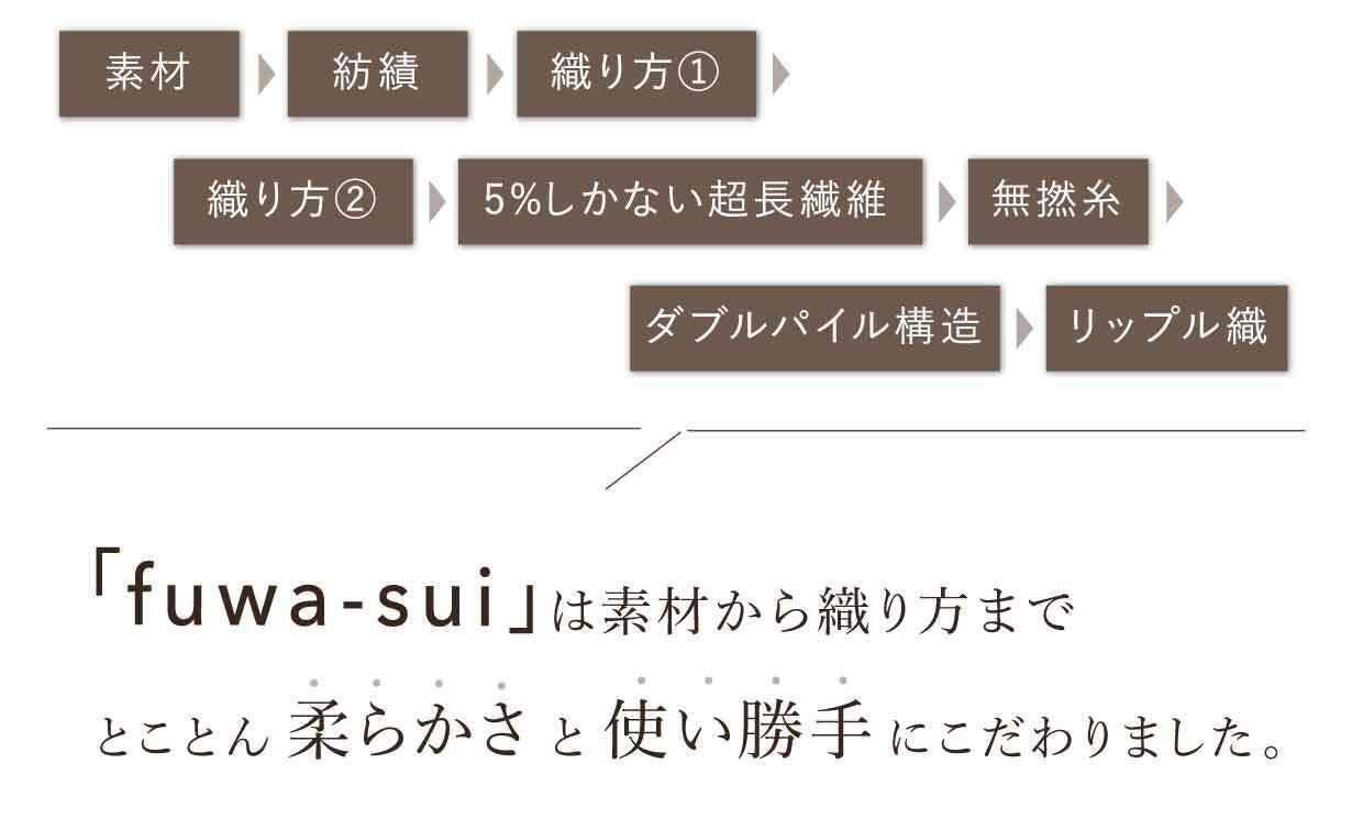 fuwa-suiの吸水性・肌触り・速乾性の3拍子が揃ったタオルをぜひお試しください。