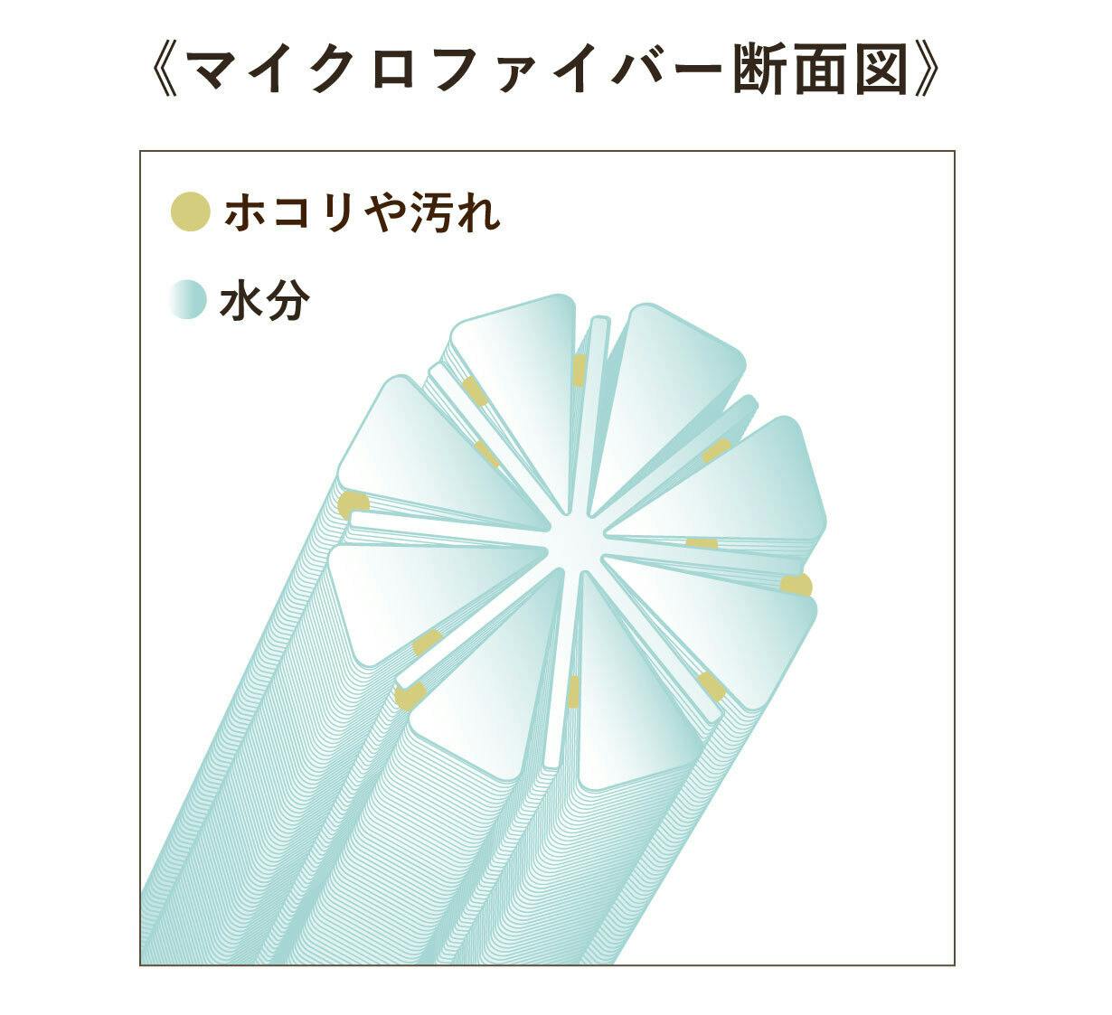 繊維の細さは、髪の毛の100分の1と極細でとてもやわらかく繊維の表面の「ぎざぎざ」で汚れをかき取り、水をぐんぐん吸うことで人気の素材です。