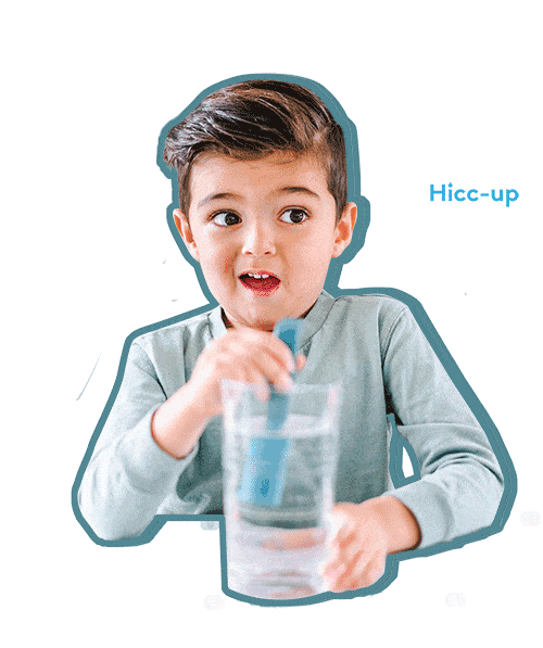 HiccAwayを使うとでは、特殊な形状のストローで極めて強い力で水を吸い上げ、水を飲み込むという一連の動作で息が整います。息が整うことで、しゃっくりが止まります。