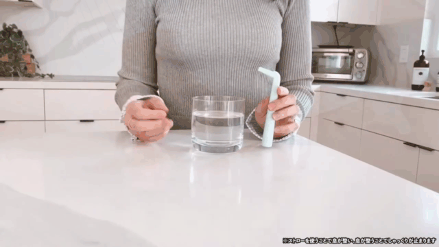 HiccAwayの上部から力強く水を吸い込み、すぐに一息で水を飲み込む。
