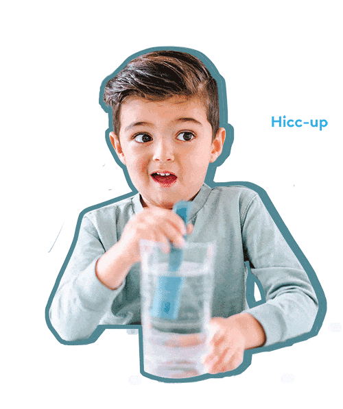 HiccAwayを使うとでは、特殊な形状のストローで極めて強い力で水を吸い上げ、水を飲み込むという一連の動作で息が整います。息が整うことで、しゃっくりが止まります。