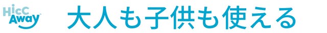 A: 大人もお子さまも誰にでも簡単にお使いいただけます。日本の食品衛生法検査にも適合していますので安心してご使用ください。ただし、HiccAwayは医療機器ではなく、疾病の予防や治療のために作られたものではありません。疾病の治療には、医師、専門家と相談の上、然るべき機関にて実施頂くようご注意下さい。