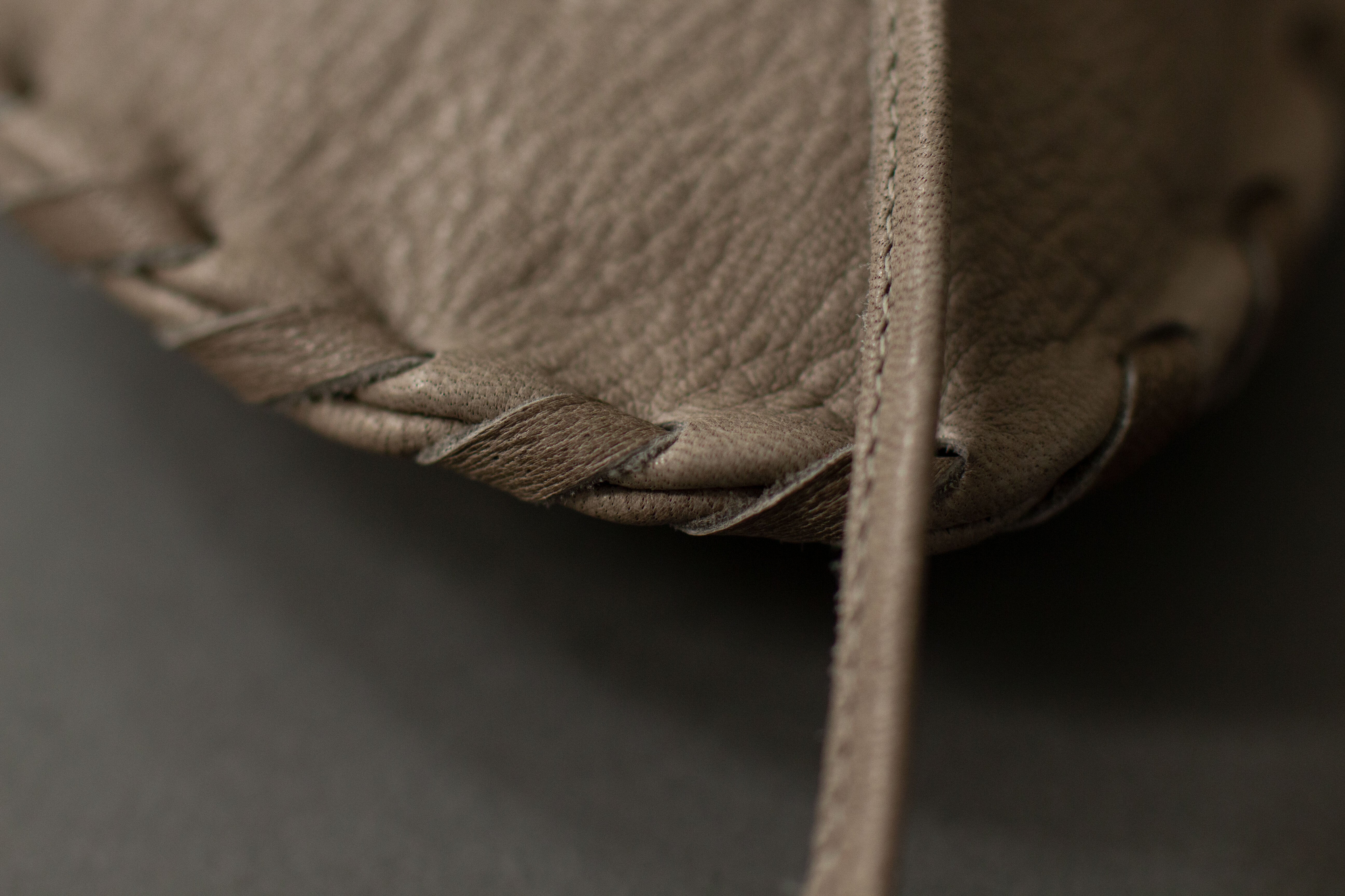 ガイアさんでは、各パーツに合わせ皮の特徴が活きるように使用する部位を考え裁断し、強度が必要な場所には伸び止め加工をするなど鹿皮の柔らかさが長所として生きる仕立てをしています。