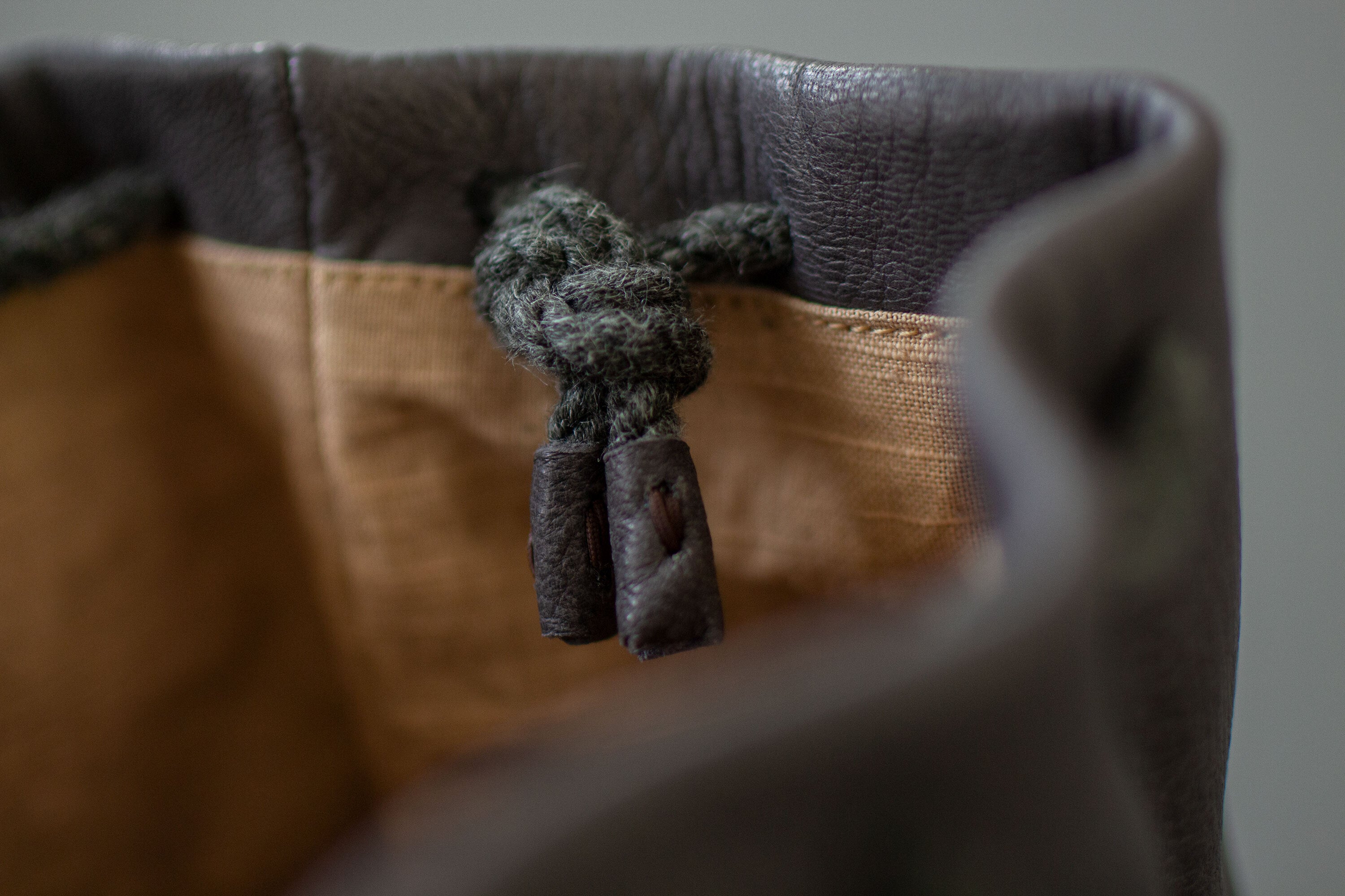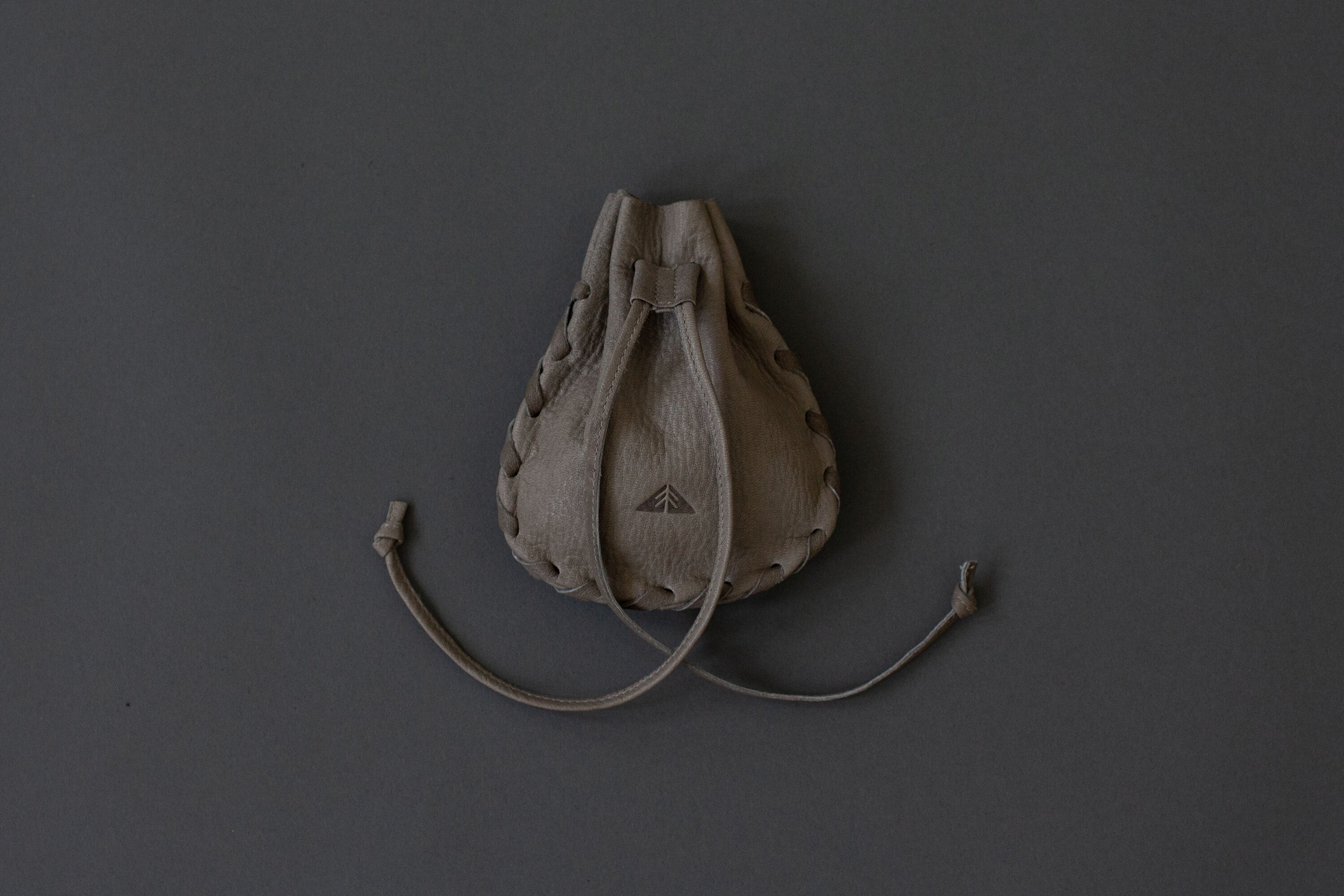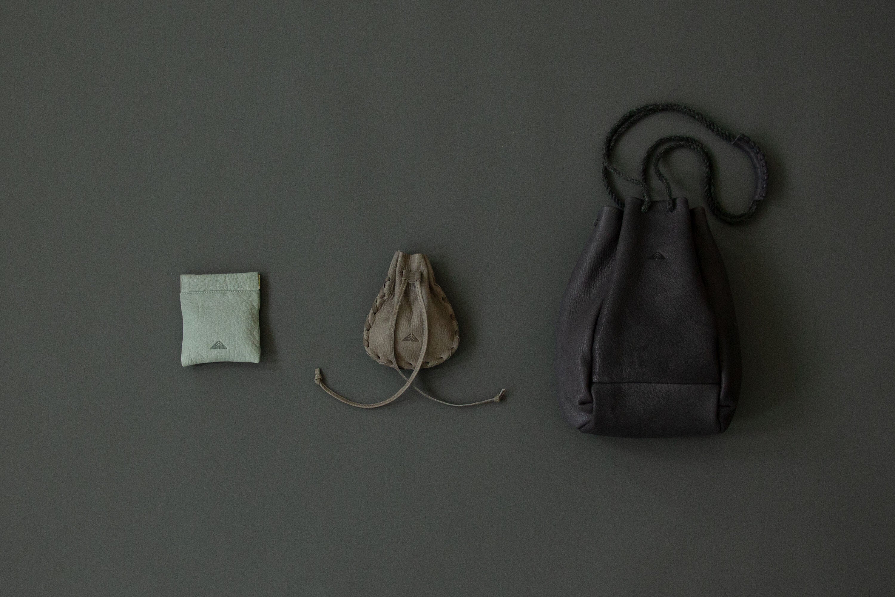 かつてはマタギたちの商売道具の火薬を雨から守ってきた丈夫な巾着をベースに、現代でも大切なものを仕舞うことができる小物入れとして制作しました。