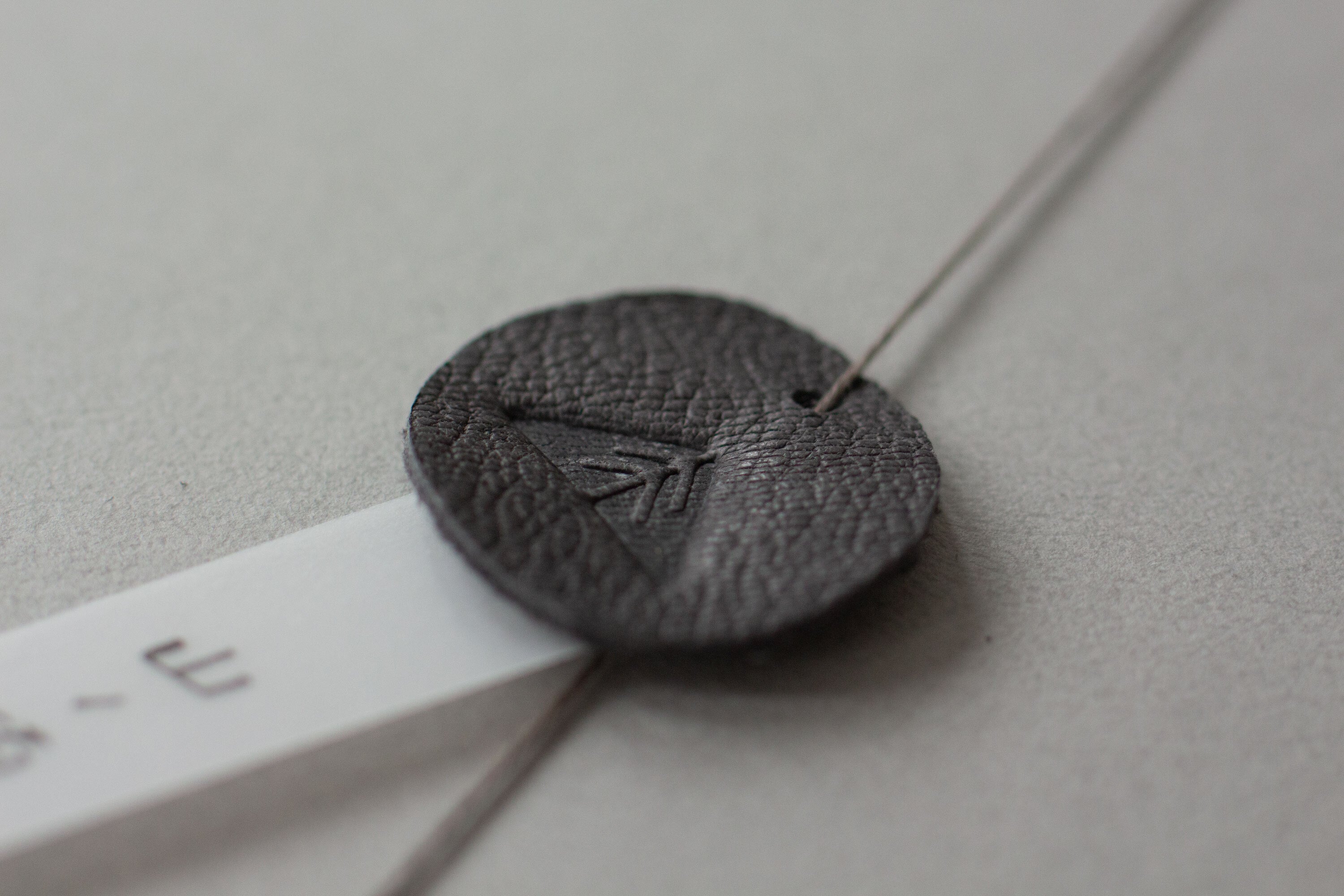 周囲には鹿皮で作った革紐の飾縫いを手縫いで仕上げています。