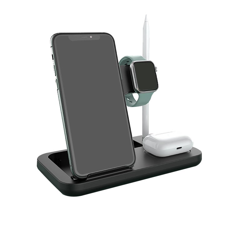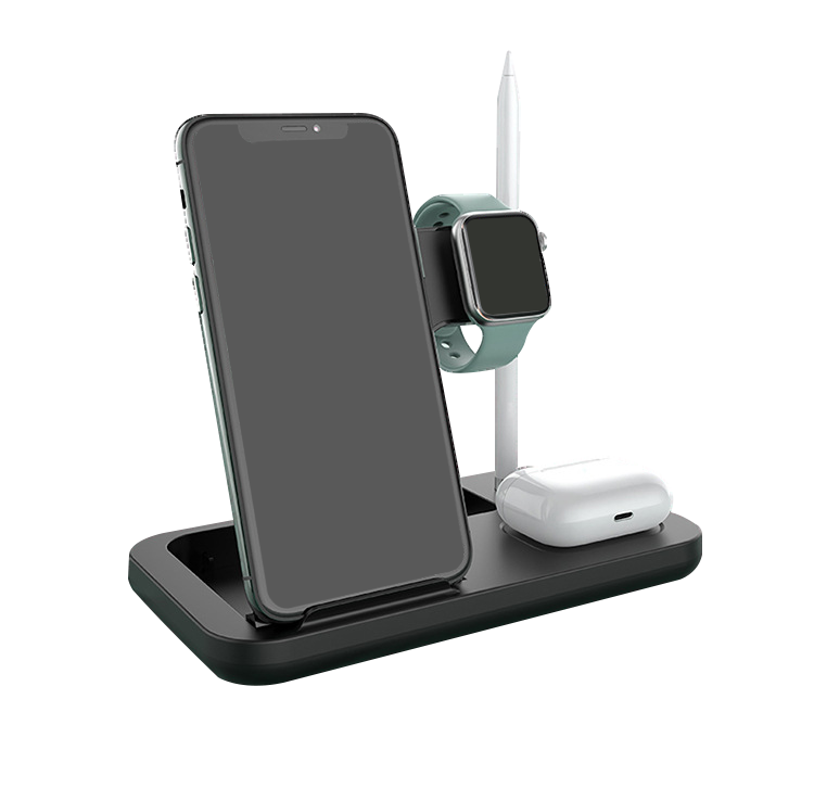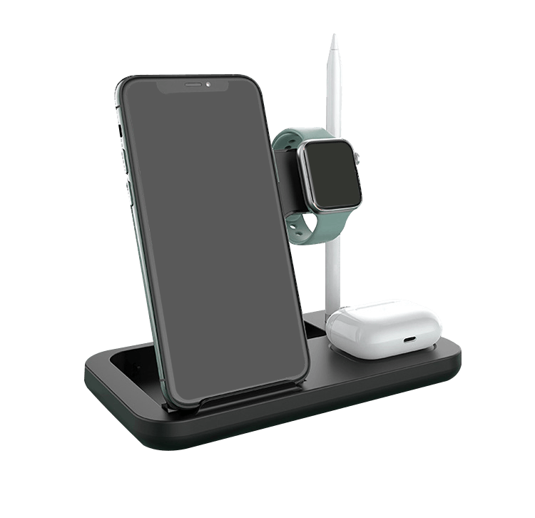 「ワイヤレス充電王」は、『iPhoneまたはAndroidスマートフォン』、『Apple Watch』、『Airpods』、『Apple Pencil』 ワイヤレス充電対応デバイスの4台を同時に充電できる4in1ワイヤレスチャージャーです。