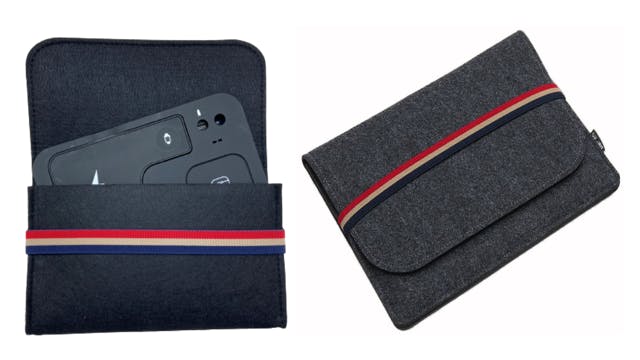 本体や持ち物を傷つけないで持ち運べるワイヤレス充電王専用ケースです。毎日通勤や出張、旅行などの外出時でもコンパクトに収納したり、メンズやレディースどちらにも合うデザインなのでビジネスやプライベートでも違和感なく使用できます。洗えるフェルトとして注目のポリエステルで作られたフェルト素材でいつでも清潔に保ち、ゴムバンドでケースのフタを固定します。