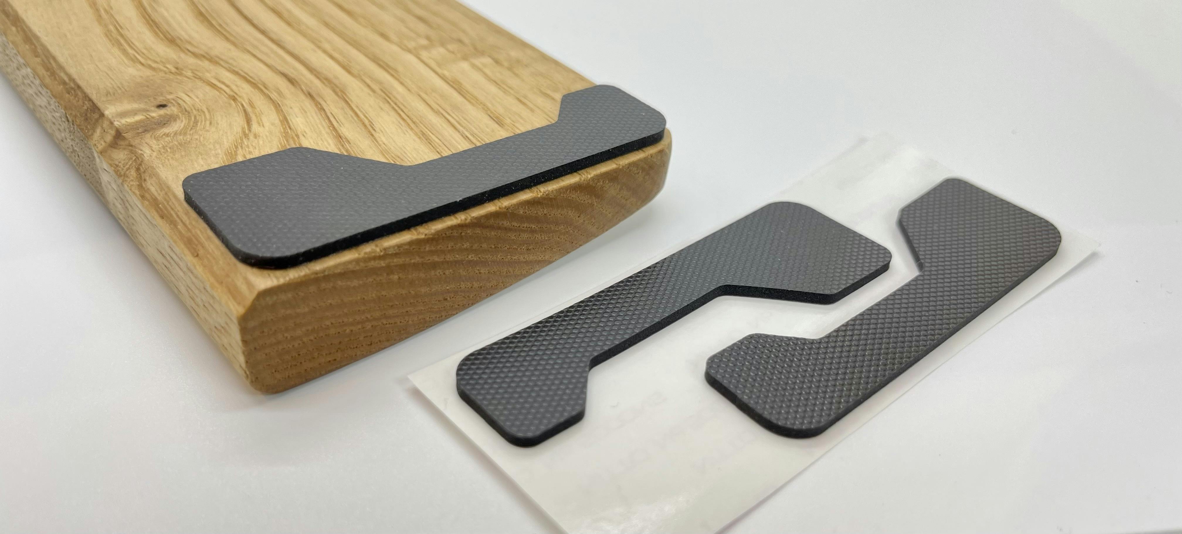 パームレストの素材としてクッション等が一般的な中でパームレスト研究所では木材を採用しました。クッションのパームレストは沈み込みによる高さのずれがある一方で、木材の適度な硬さが手のひらに快適な使用感を与えてくれます。