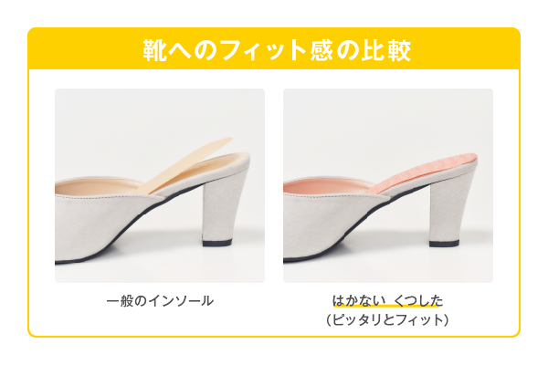 ④(説明動画のように)本品を丸めながら靴の中に入れ、内底面に装着させてください