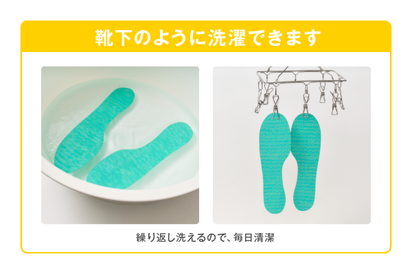 靴の中に長い間放置せずに、着用後はお洗濯をしてなるべく本品を伸ばした状態で保管していただくことをおすすめします。