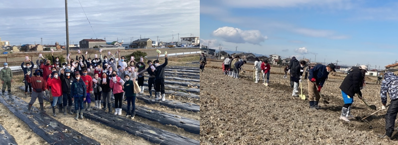 今年の2月8日に、株式会社Bride to be(ブライド・トゥー・ビー)さん(名古屋)が総勢30名で今回の中川区供米田地域に、「田んぼの畦作り」と「白菜畑の片付け」のお手伝いに来ていただきました。今度は、未来っことの交流ができるよう、「みんなで未来をつくろ米!プロジェクト」のご支援、何卒よろしくお願いします。
