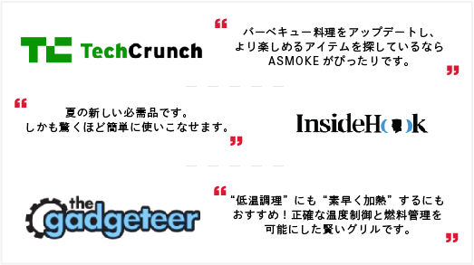 ASMOKE AS300に初めて出会ったときの印象は、日本にはまだないオシャレなBBQグリル!というものでした。しかし、ASMOKE AS300について調べれていくにつれ、BBQをする人の立場に立って作られた、”BBQが大好きな人たちが作った”グリルであることがとても良くわかりました。調理をする人と、料理を食べる人みんなが笑顔になる商品、それがASMOKE AS300なのです。