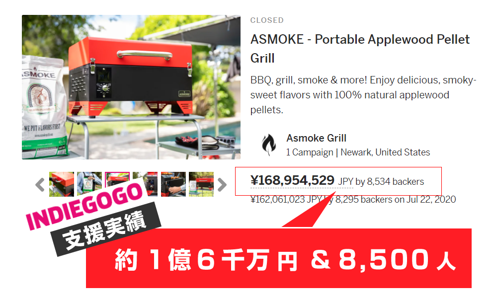 ASMOKE AS300はアメリカのクラウドファンディングサイトIndiegogoで開始5分でファンディング100%達成しました。総額約1億6千万円、8,534人から支援を集めた爆発的人気アイテムです。
