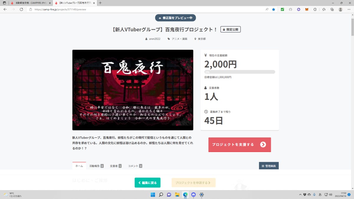 このキャンプファイヤーを通して、自分たちを宣伝し沢山の方に知って頂き、自分達が思い描く未来に向かって走り続けたいと思います。