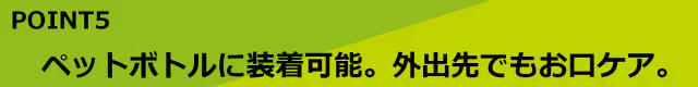 ペットボトルにも装着可能。キャンプなど水道が無い場所でも歯や歯茎のお手入れができる。 -