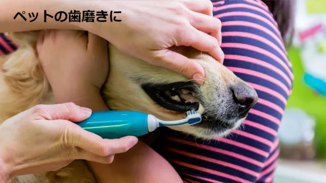 歯垢のお掃除に使うのはお水だけ。刺激が少ないので敏感な人でも使える。 -