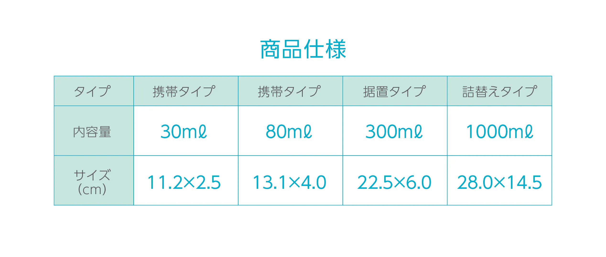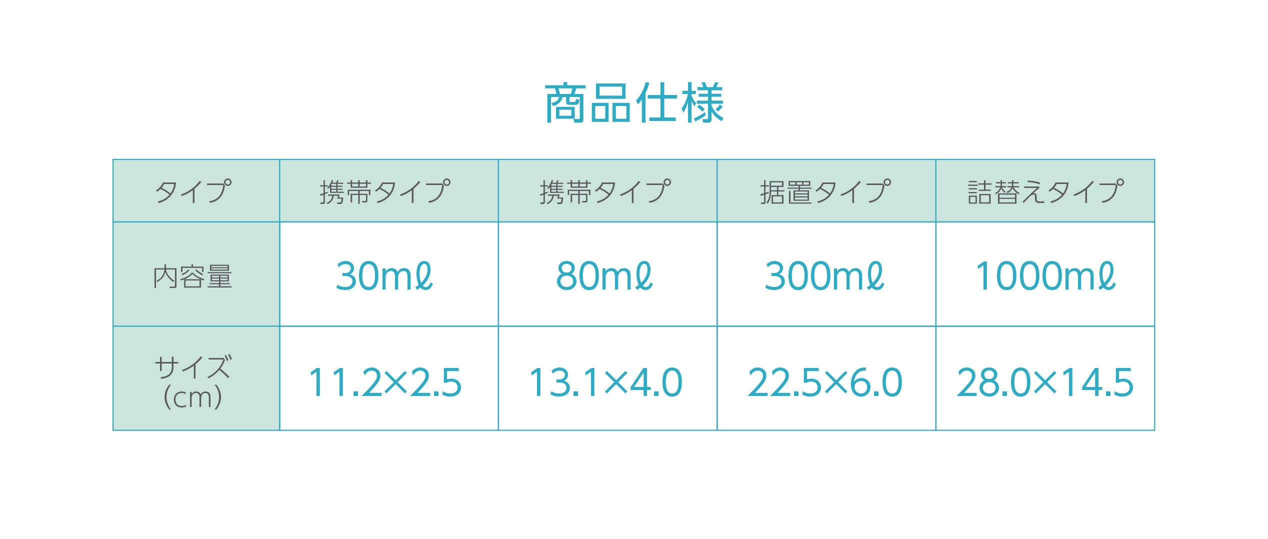 ポケットinのサイズから詰め替え用まで、いろいろ展開しています。