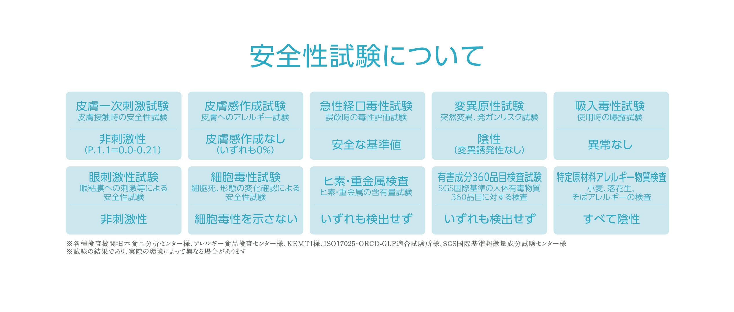 ※1 商品の性質上、肌への付着も想定されるため、第三者機関での安全性の確認を行っております。