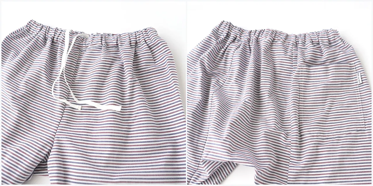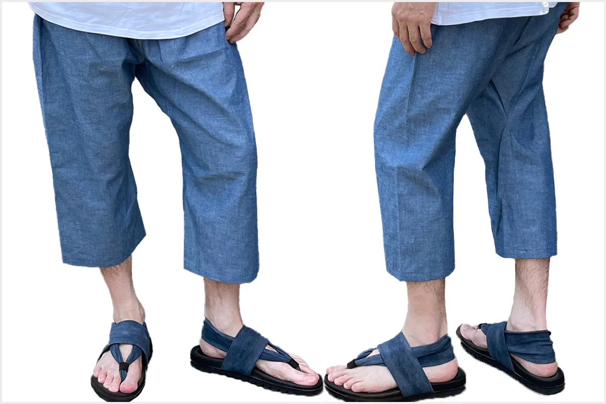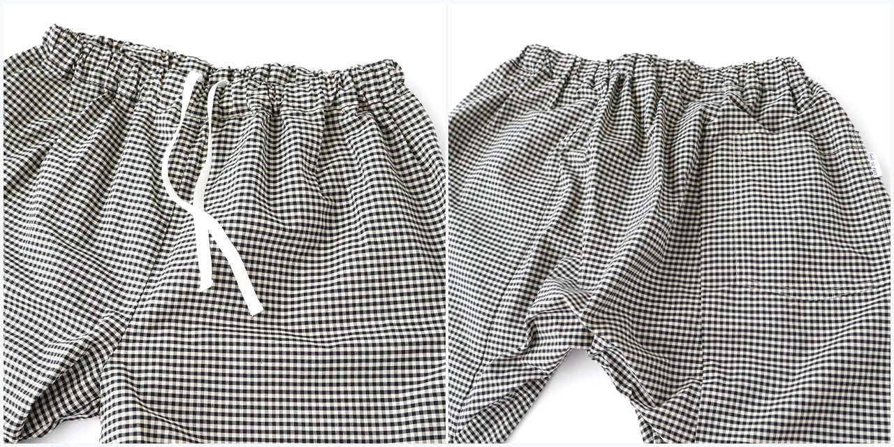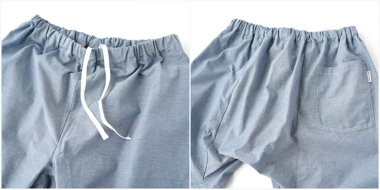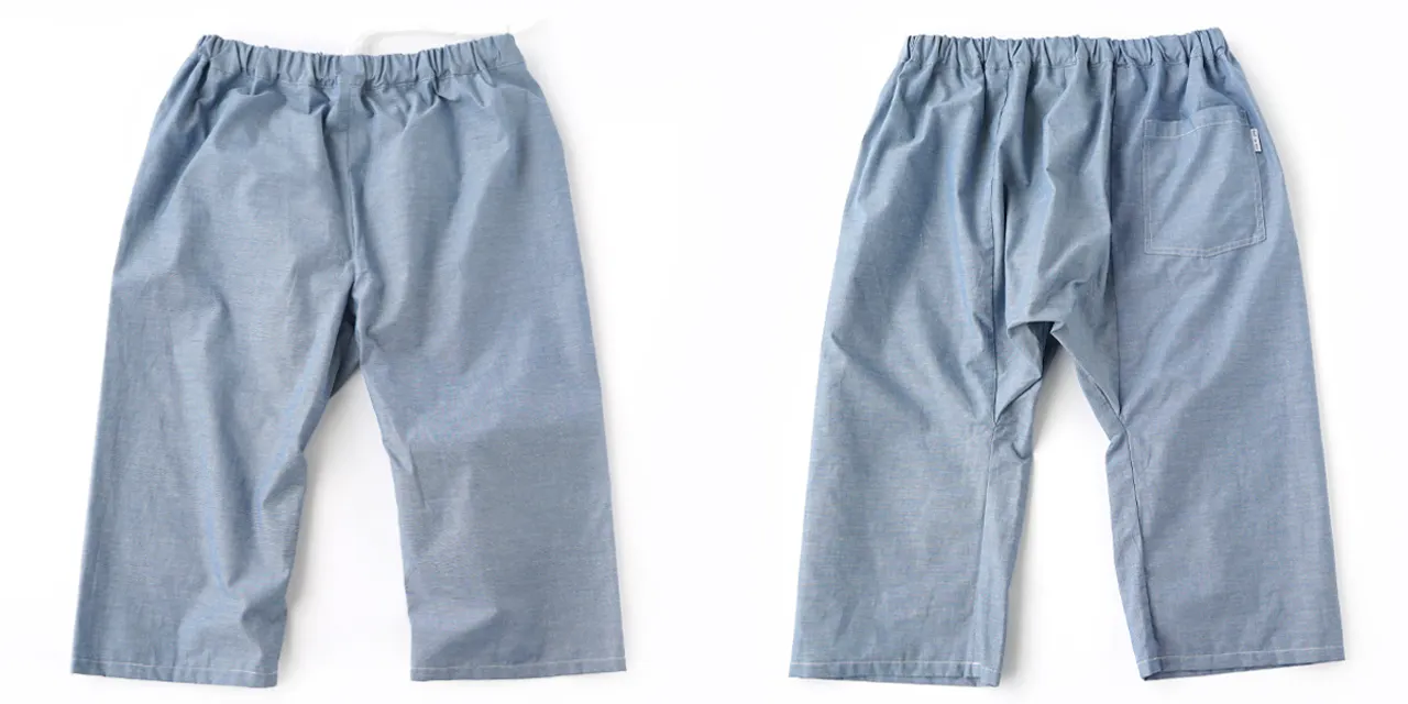 この職人さんの縫製仕様のステテコをぜひ皆さんにも体感していただきたいと思い、現代の縫製工場に協力してもらい、下着としてだけではなくアウターとして1枚ででも着用できるようアレンジを加えて再現しています。