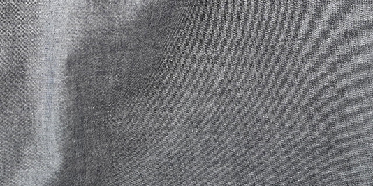 シャンブレー生地の「ブラック」カラー。糸はブラックとホワイトを使用していますので、生地の見え方はグレーになります。