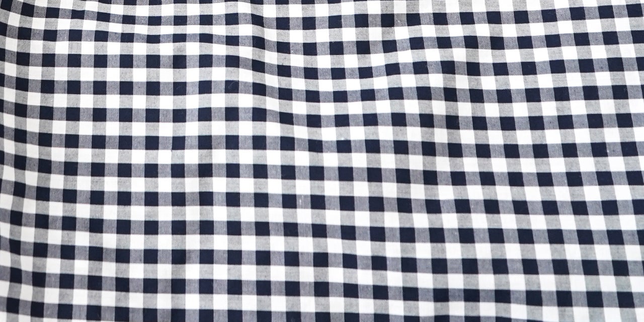 オーソドックスなネイビーギンガムチェック。大柄になるとカジュアル感が増しますが、派手になりすぎず、大人でも着こなせるスタンダードな柄です。