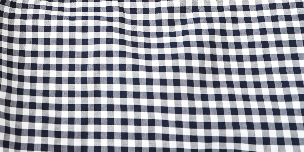 こちらも打ち込み本数の多いタイプの薄手生地になります。ギンガムチェックでも、小柄なのでキレイめな印象になります。