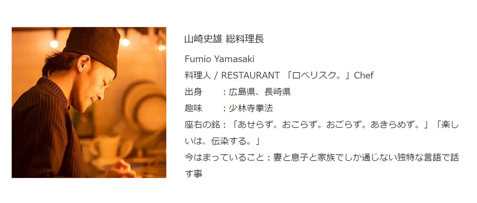 この経験が、山崎総料理長の料理人人生を大きく変え、「ロベリスク。」の開店や「グルテンフリープロジェクト」の発足へと繋がりました。