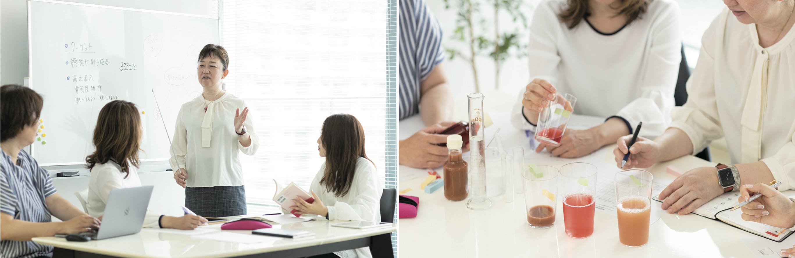 長年の構想をカタチにできる!私たちはやっと出会えたこれらの成分を使って開発に着手しました。まずは錠剤の開発を試みましたが、十分な成分量を配合しようとすると錠剤の数がすごく多くなってしまいました。どんなにからだに良くても毎日10錠も20錠も飲めないし、それがストレスになっては元も子もありません。そこで、ドリンクタイプへとシフト。でも抗糖化素材であるマンゴスチンアクアを入れるとどうしても濁りがすごく強く出てしまい…。キレイな色でも欲しい成分を配合できなければ意味はないし、すご〜く悩みました。やっぱり、味、匂い、配合成分、見た目のどれも妥協したくない!何度も試作を重ね、納得のいくドリンクに仕上げるために、まさに試行錯誤の連続でした。