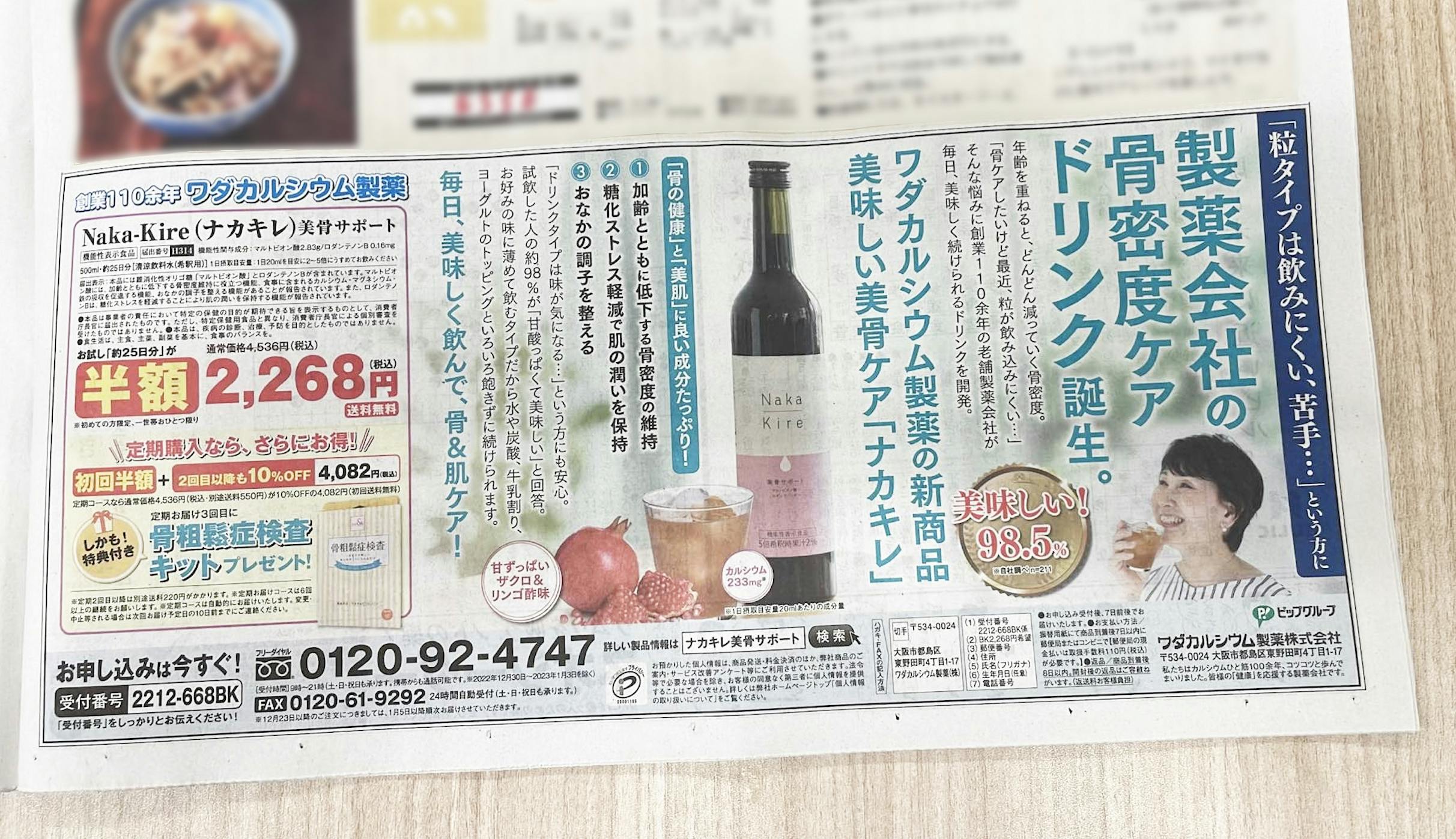 定期購入3回目で骨粗鬆症検査キットプレゼント!新聞広告の掲載もはじまっています♪