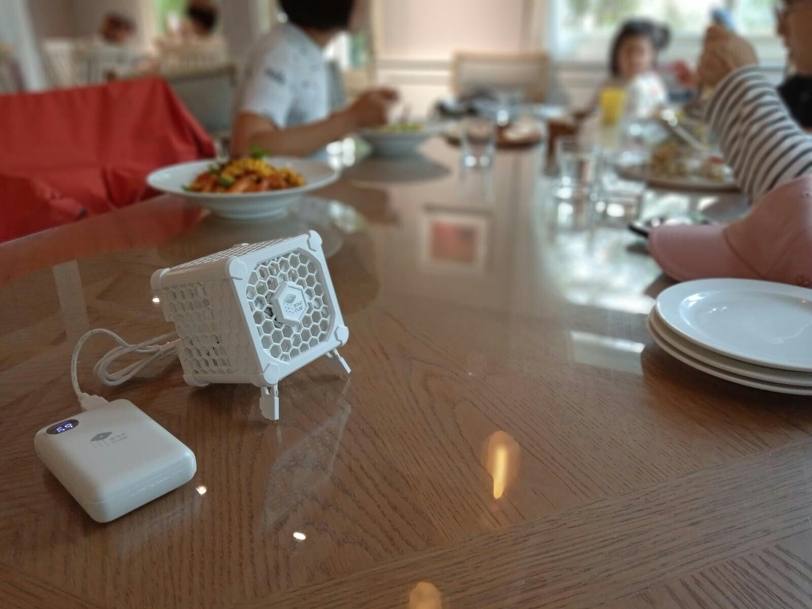 消費電力が小さいのでモバイルバテリーやPCのUSBからの電力で動きます。まさに、持ち運んで使うだけの手のひらサイズ空気清浄機です。