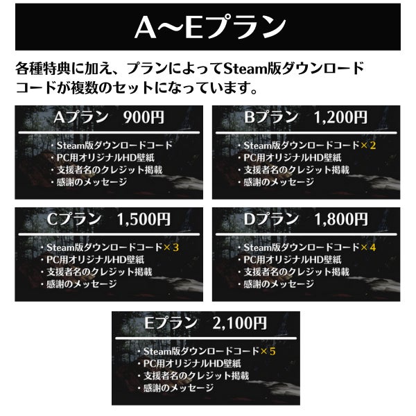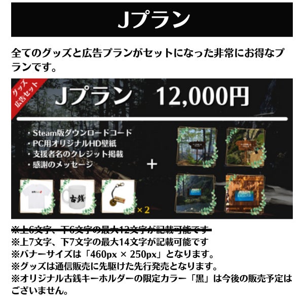 友人と遊びやすい最大5個のSteamキーが付いたセットやゲーム内広告枠に加えて、古銭プッシャーフレンズのグッズをリターンに取り揃えました。なお、今後Switchへの移植も予定しております。各種広告プランはSwitch版へ反映は行われませんのでご注意ください。