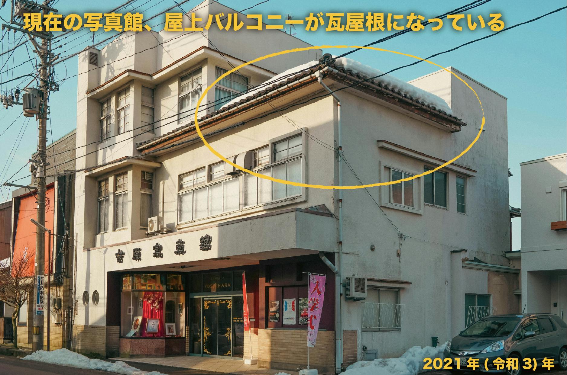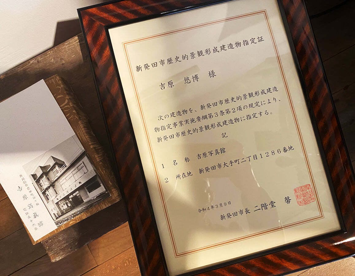 吉原写真館は、多くの御客様に支えられ本年で133年目になります。本館竣工は1936(昭和11)年の85年前、施主は私の祖父・秀長です。とても珍しい木造三階建てのモルタル造りの昭和モダン建築、現存するのは大変に貴重であると2017(平成29)年に国指定の有形文化財に登録されました。ここまで続けられたことに、とても感謝しています。