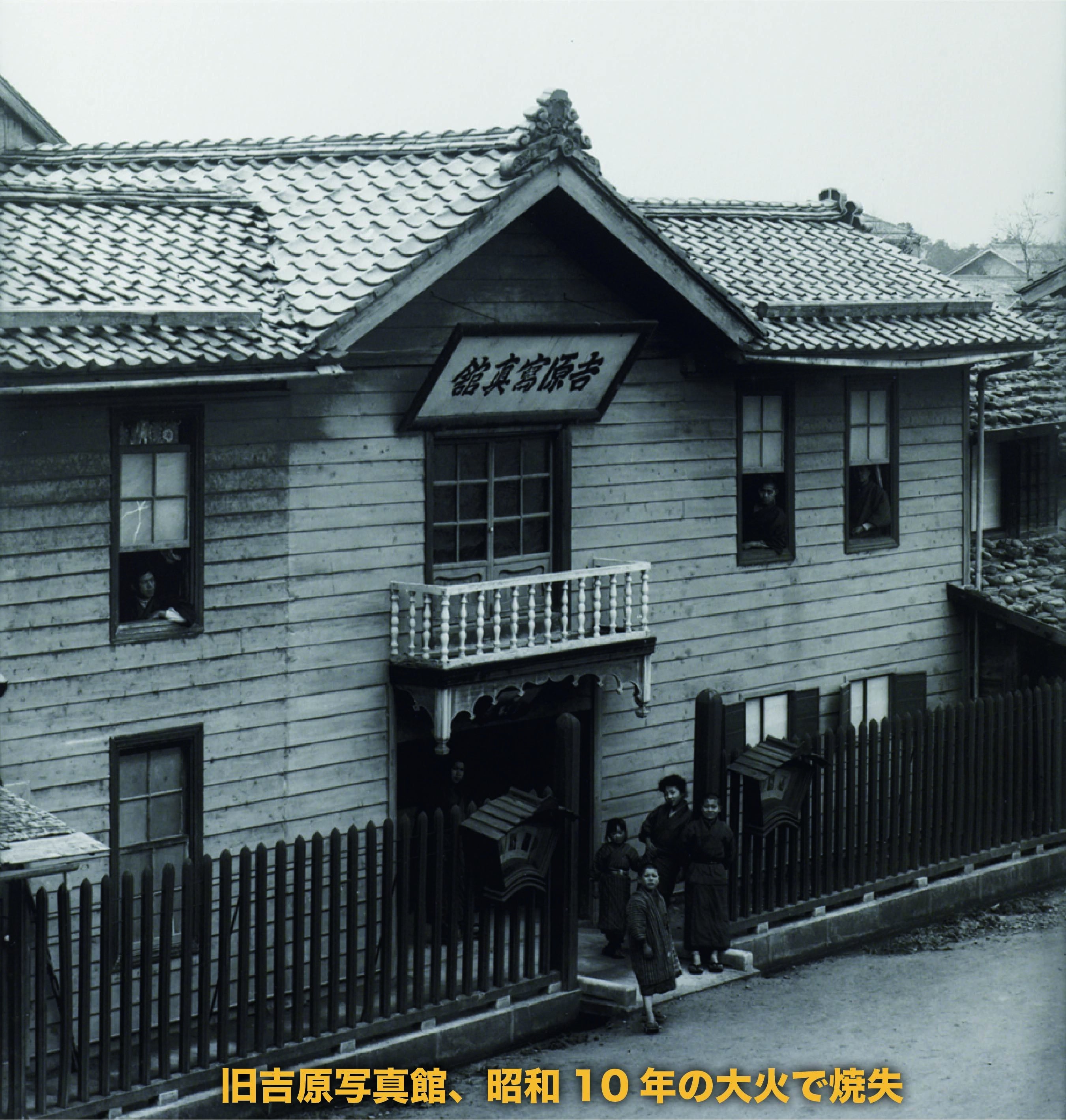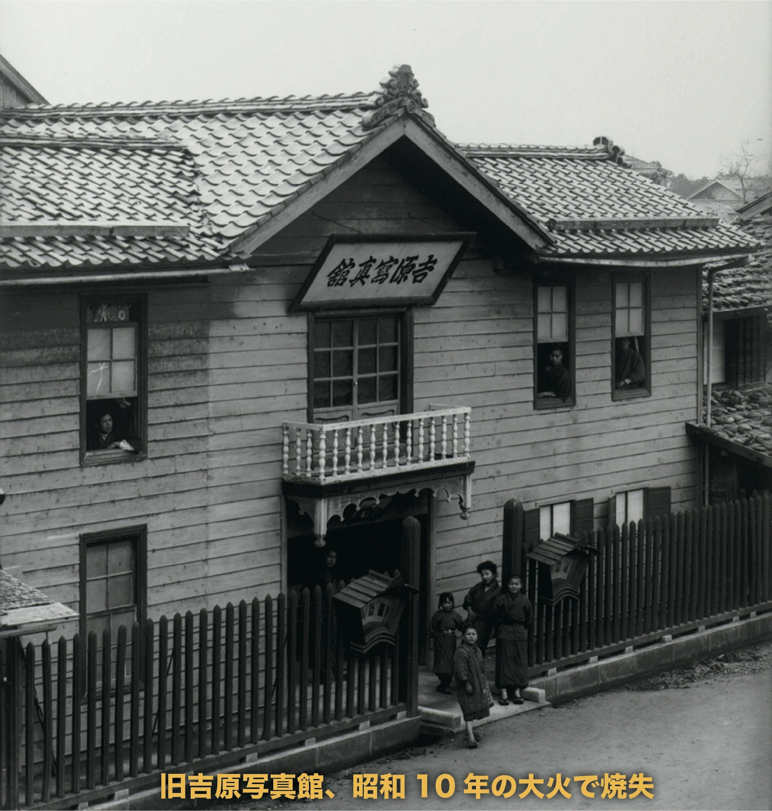 次に、簡単に吉原写真館の歴史を紹介させてください。当館の歴史は、1870(明治3)年頃、内科医だった吉原秀齋が新発田藩三条寺町にて写真を撮り始めた時に遡ります。そして1890(明治23)年に、2代目玄琳が新発田町西ヶ輪(現在地)へ移転。屋号を「吉原写真館」としました。当時の新発田は田園に囲まれた商業の都としてまた軍都として栄えていたこともあり軌道にのることができました。昭和10年の大火により全焼。翌年、4代目秀長が再建。それが現在の建物です。その後、昭和から平成と、5代目俊雄と妻・邦子が写真館を守り続け、現在、6代目の私が館主です。