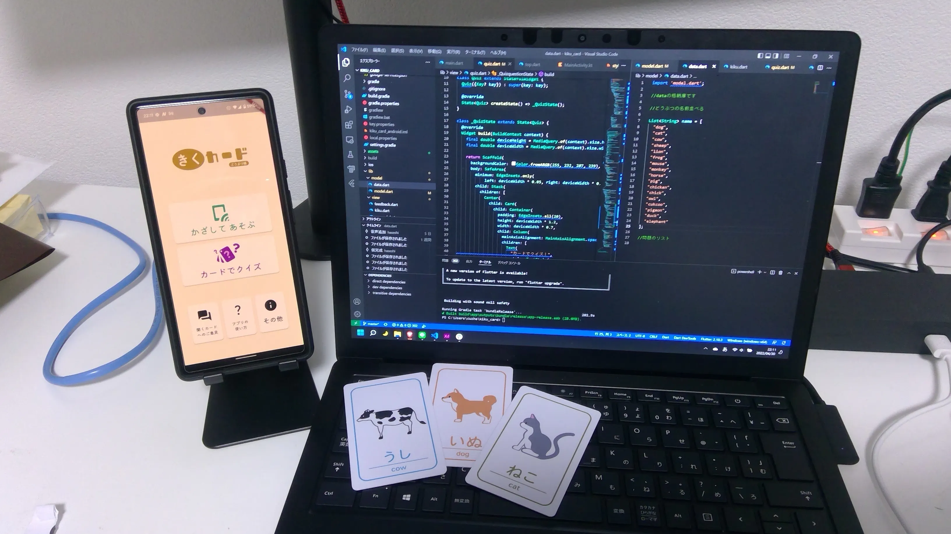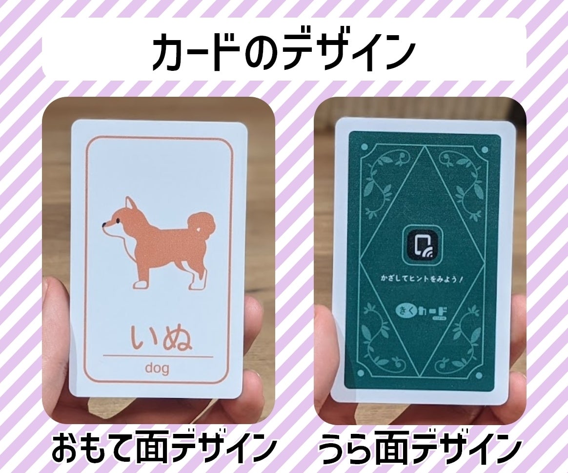 聞くカードはカードに情報を書き込んだチップを埋め込み、それを専用アプリで読み取ることで、カードごとの音や、そのほか多くの情報を見てカードを体験することができる次世代カード型知育玩具です。