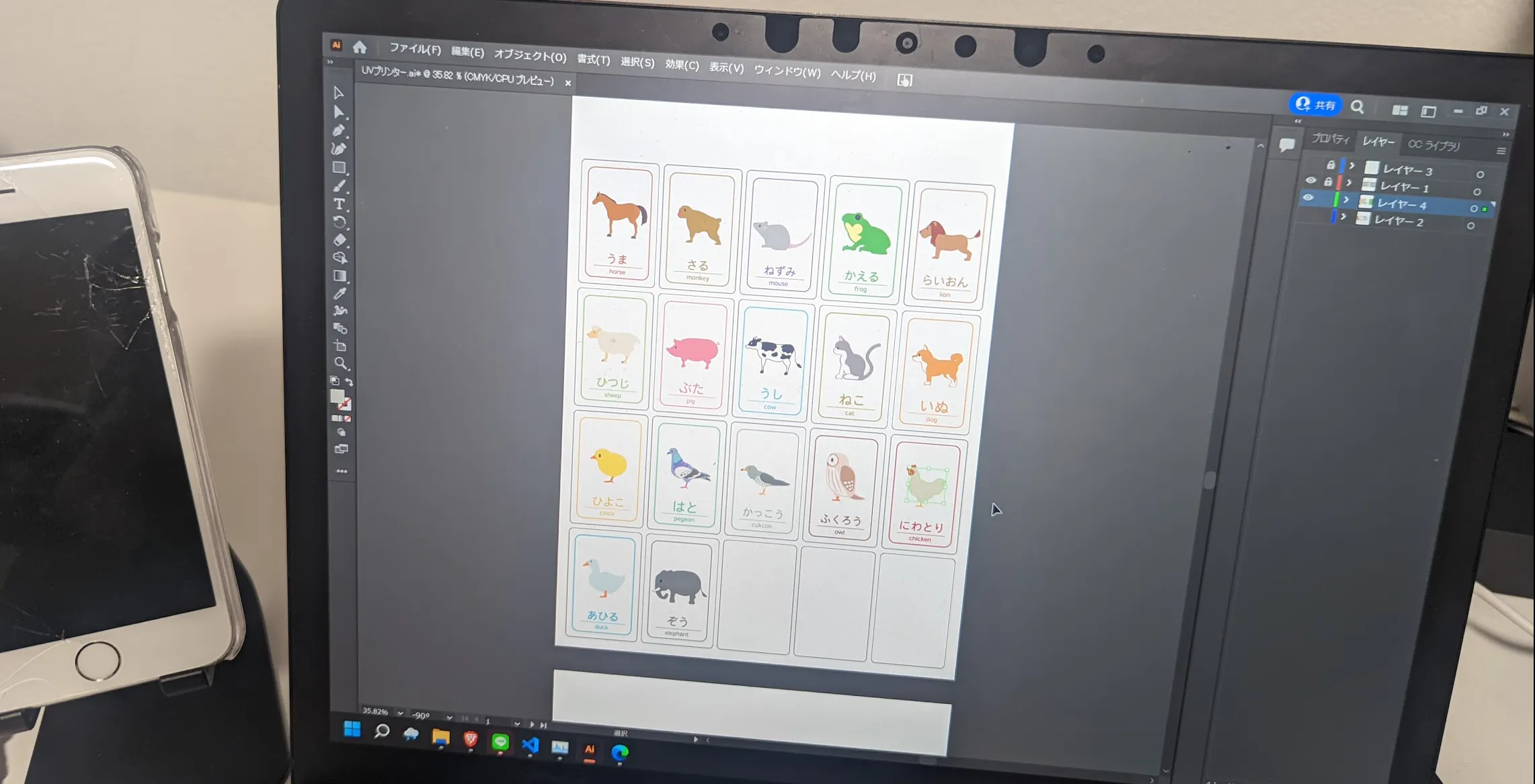 印刷にはUVプリンターを使用し、つやのある美しいカードを制作。子供が口にくわえても大丈夫なように、カードは噛んでもちぎれないプラスチック製になっています。