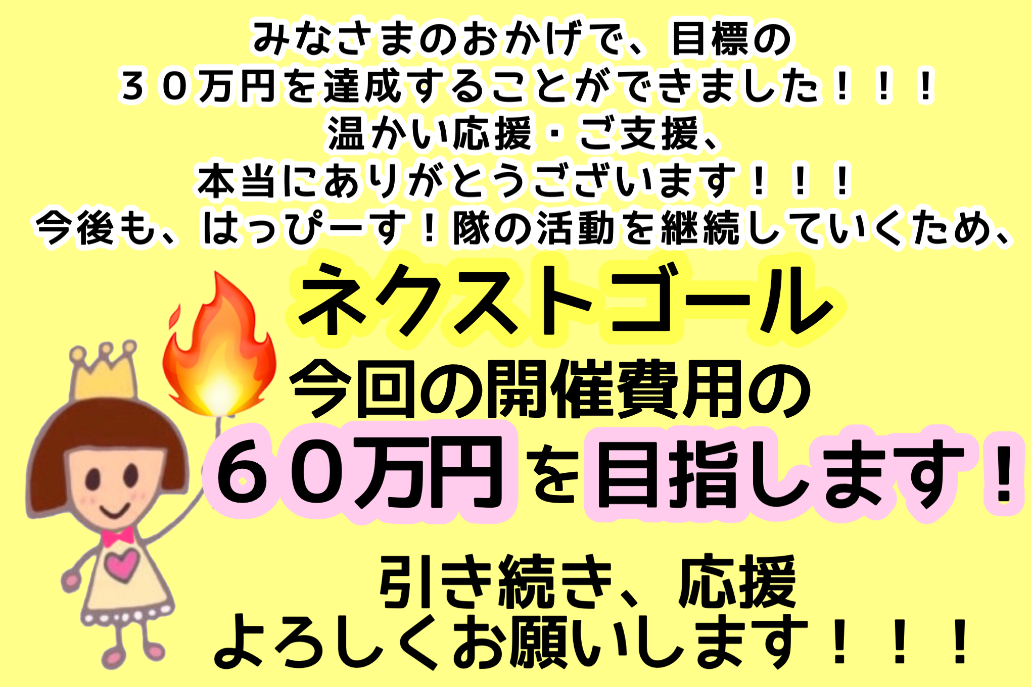 ※今回の開催費用を上回る金額が集まった場合、次回はっぴーす!隊の活動費として大切に使わせていただきます。