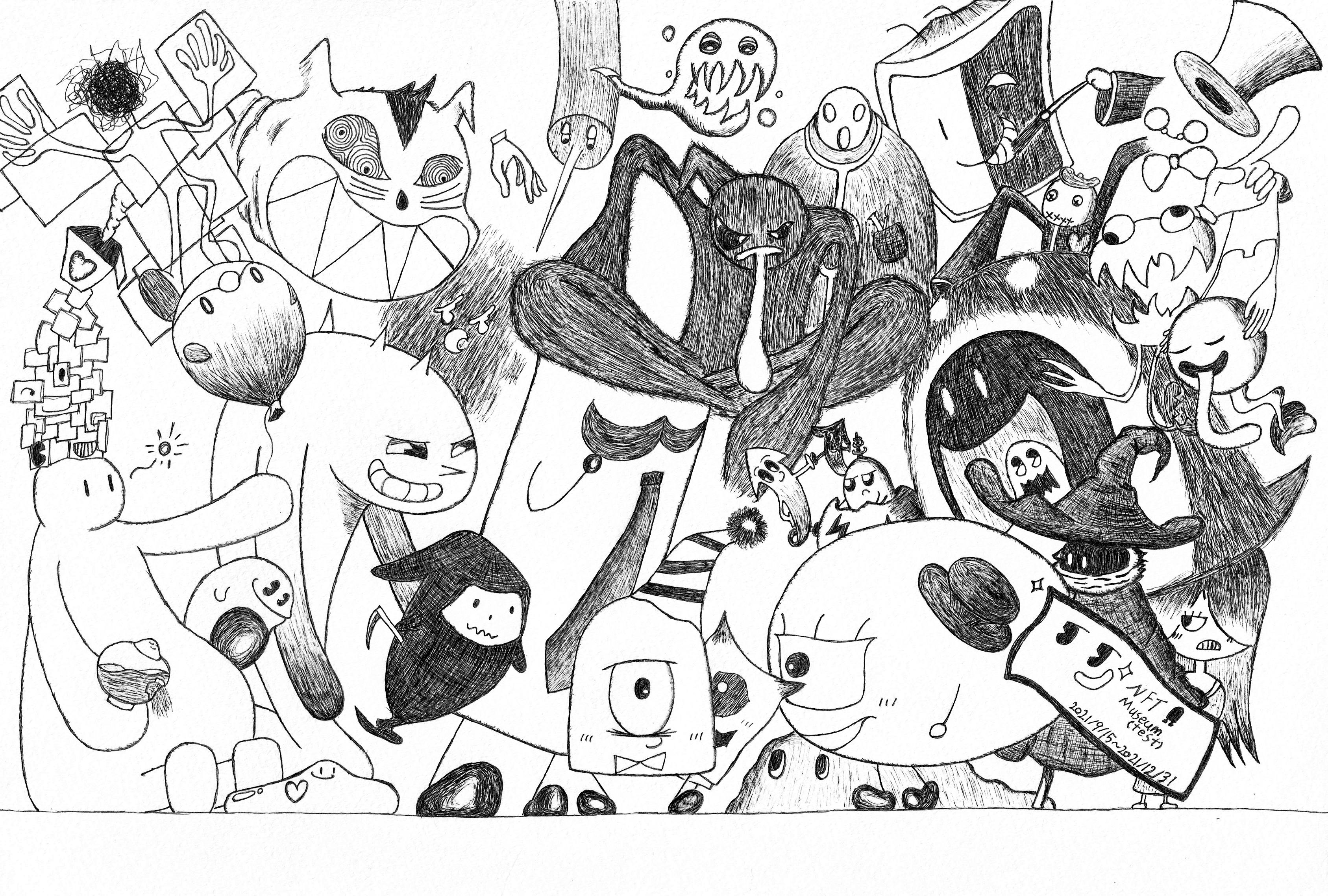 ■おばけの世界に住むおばけたちのボールペン絵■