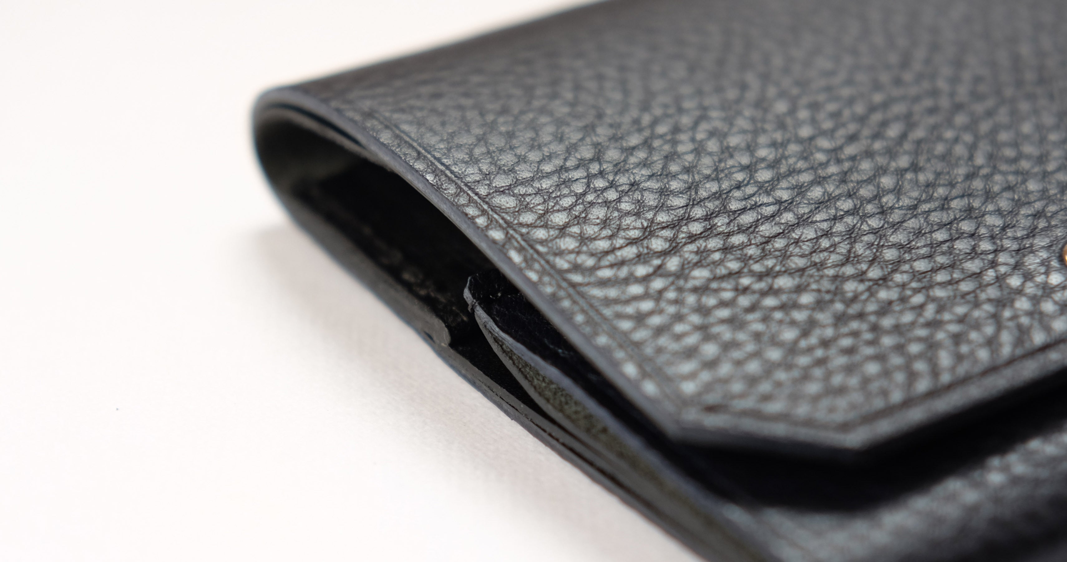 これにより耐久性はもちろん、財布を手のひらに置いたときの安定感が格段に変わります。