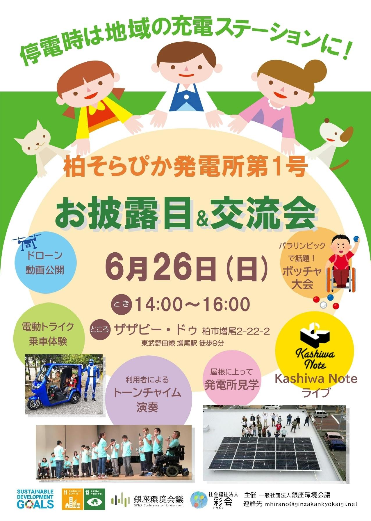 今回の柏そらぴか発電所も、以下を行うことで、ザザビー・ドゥを地域に開かれた、寄り添った施設となる活動の一つにしたいと考えます。