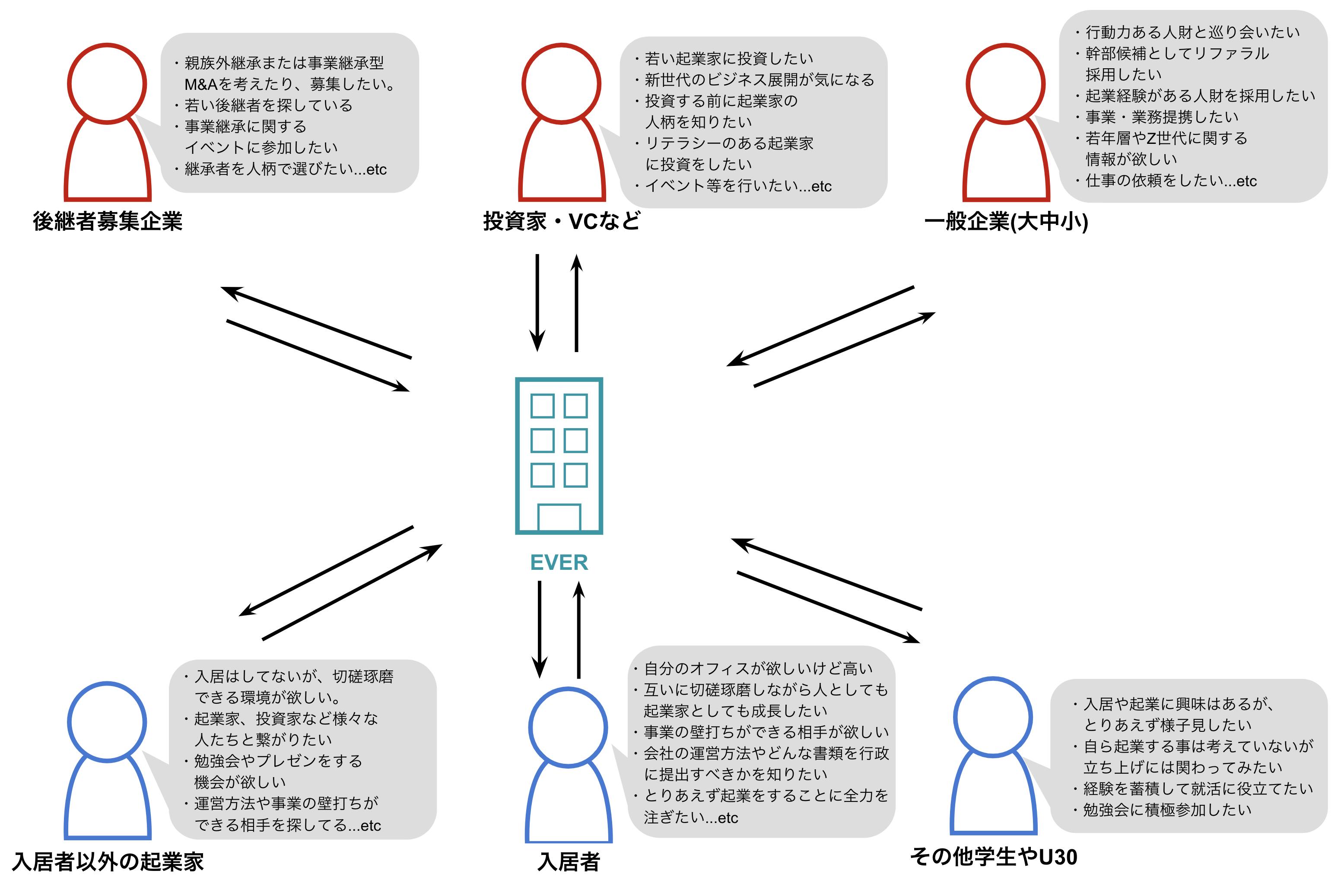楪葉さんから初めて本プロジェクト構想を聞いてから、開設をずっと楽しみにしている一人です。どんな起業家が集まるのだろう?そしてどんな新しいビジネスが生まれるのだろう。リモートで出来ることは本当にたくさん増えましたが、その場でしか醸成されないものも未だに多くあります。それは肌で感じる熱量だったり、深夜・朝まで頑張るライバル(仲間)への焦りかもしれません。これ以上ない自分を成長させる機会、ビジネスにだけ没頭できる環境が「EVER」にはありそうです。同じくインキュベーション、シェアオフィスビジネスを展開する事業者として、一人でも多くの個性豊かな起業家がここから巣立つことを心より祈念しています。楽しみです!