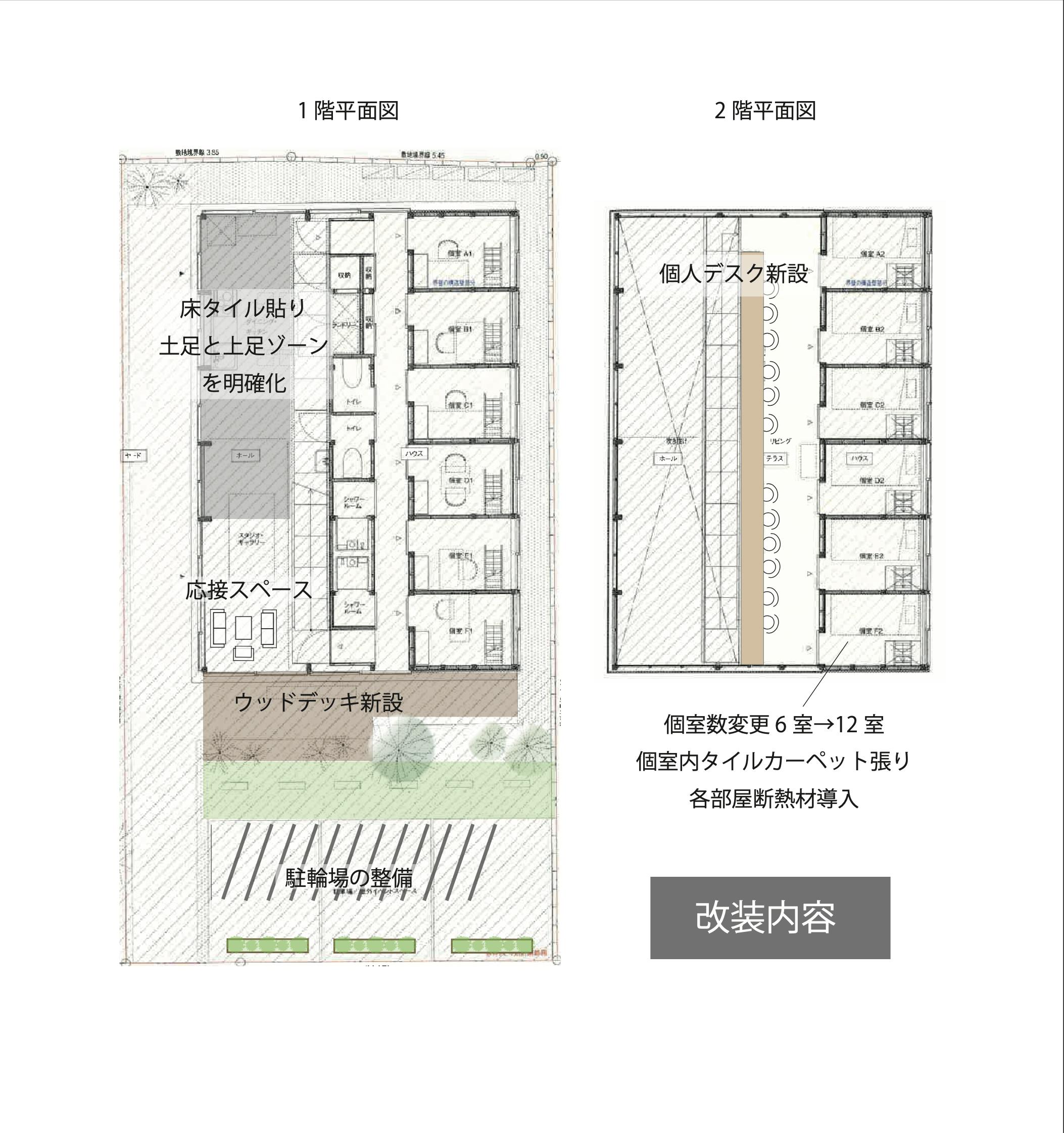 2F・3FにシェアオフィスWhatever2号店及びコンセプトシェアハウスを開業予定。