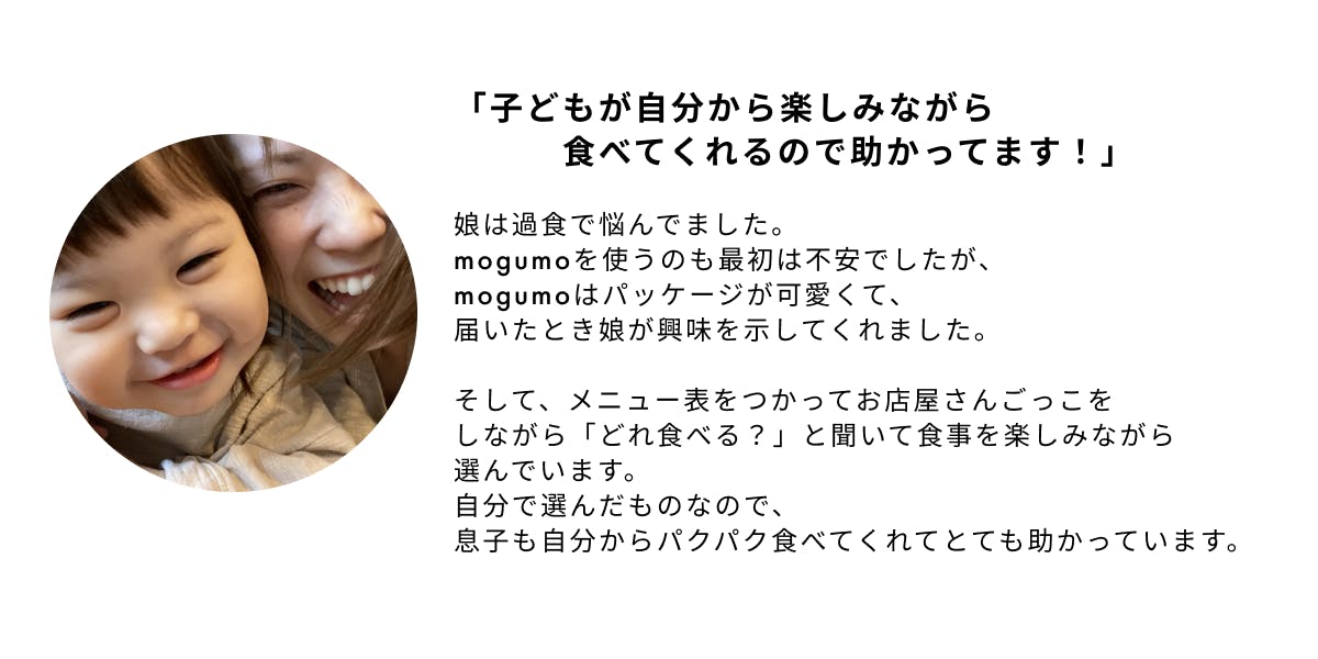 mogumoを食べてくれるお子さんがもっと"笑顔"になってくれるように。