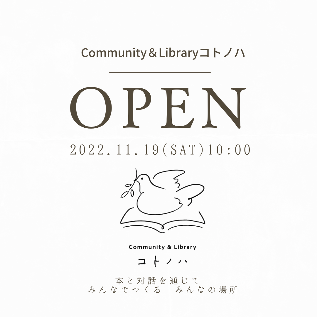 2022/11/01 07:26【御礼】この度は多くの方にCommunity&Libraryコトノハへの応援・ご支援を頂き本当にありがとうございました。私たちの想いに共感してくださる方がこんなにも多くいらっしゃることを本当にうれしく思います。Community&Libraryコトノハ 2022年11月19日(土)10時にいよいよGRAND OPENします。 ※プレオープンは11月11日(金)10時を予定しています。ただ、ここはスタート地点です。 これからこの私設図書館事業を通じて多くの人の笑顔をみんなで生み出していければと思います。Community&Libraryコトノハのコンセプトは 「本と対話を通じて みんなでつくる みんなの場所」です。 これからも皆さんと一緒により良いコミュニティを作っていければと思います。どうぞよろしくお願いいたします。 もっと見る【本棚&壁塗DIYイベントを開催します!】