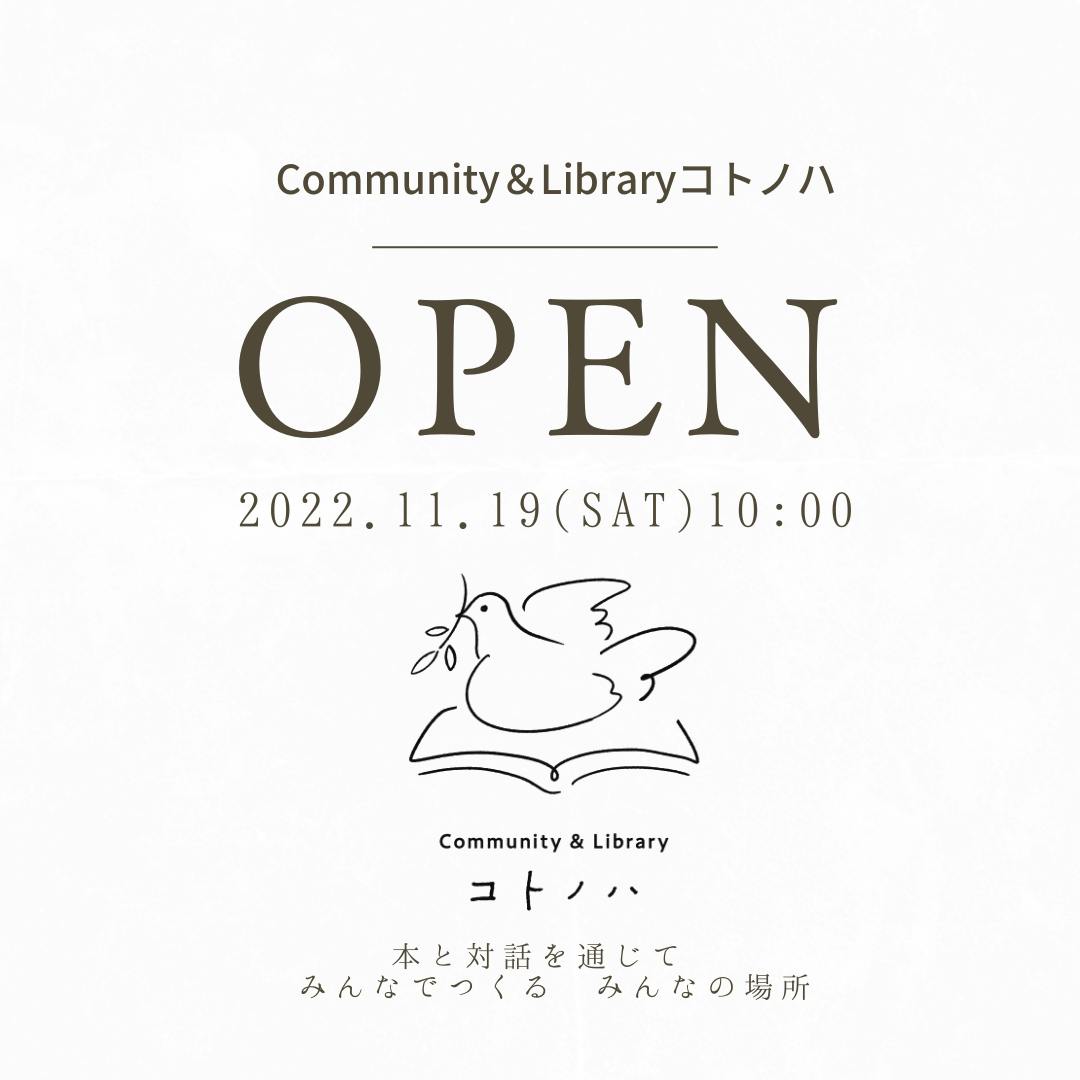 2022/11/01 07:26【御礼】この度は多くの方にCommunity&Libraryコトノハへの応援・ご支援を頂き本当にありがとうございました。私たちの想いに共感してくださる方がこんなにも多くいらっしゃることを本当にうれしく思います。Community&Libraryコトノハ 2022年11月19日(土)10時にいよいよGRAND OPENします。 ※プレオープンは11月11日(金)10時を予定しています。ただ、ここはスタート地点です。 これからこの私設図書館事業を通じて多くの人の笑顔をみんなで生み出していければと思います。Community&Libraryコトノハのコンセプトは 「本と対話を通じて みんなでつくる みんなの場所」です。 これからも皆さんと一緒により良いコミュニティを作っていければと思います。どうぞよろしくお願いいたします。 もっと見る【本棚&壁塗DIYイベントを開催します!】