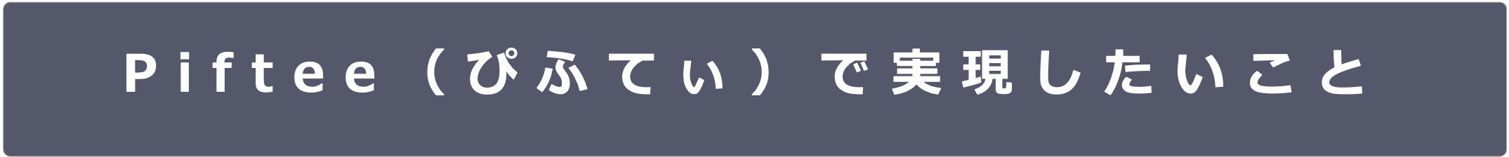 初めまして、Piftee (ぴふてぃ)の代表です。本プロジェクトにかける想いから、お伝えさせていただきます!