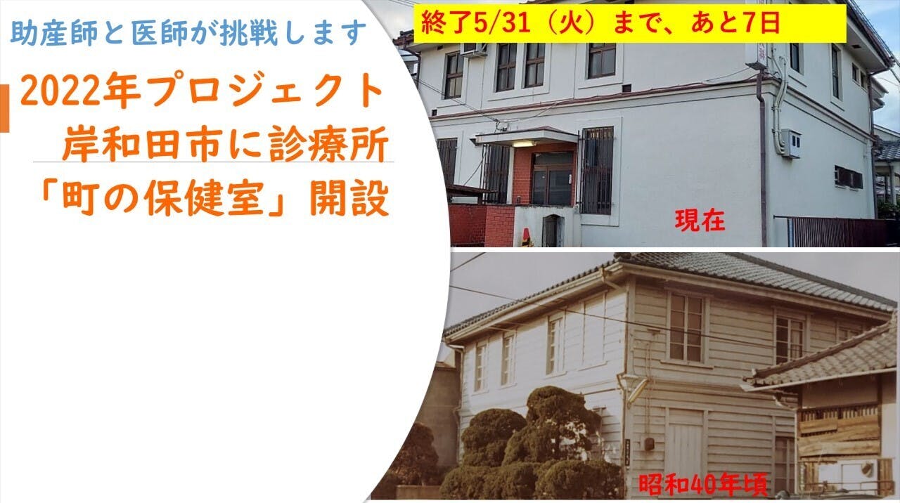 この歴史ある建物(岸和田市下野町2丁目、もと津田産婦人科あと)に皆様からのご支援という魂を頂き、診療所「町の保健室」を開設します。プロジェクトが達成しなくても、このまま診療所開設に向けて続行させて頂きます。どうぞプロジェクトを見守っていて下さい。そして皆様とのご縁を大切に、色々な形でつながっていきたいと考えています。