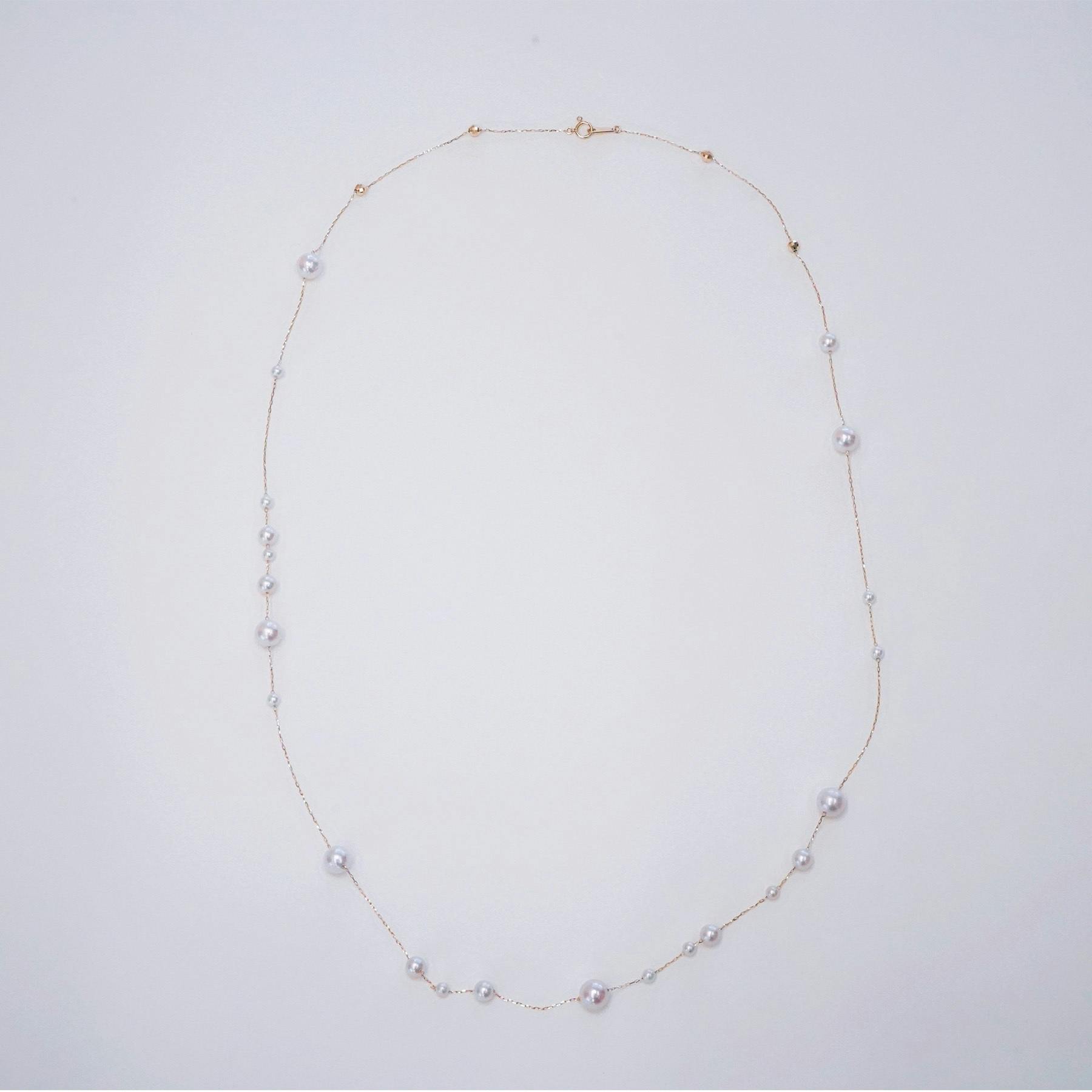 3サイズのパールが散りばめられたネックレスです。