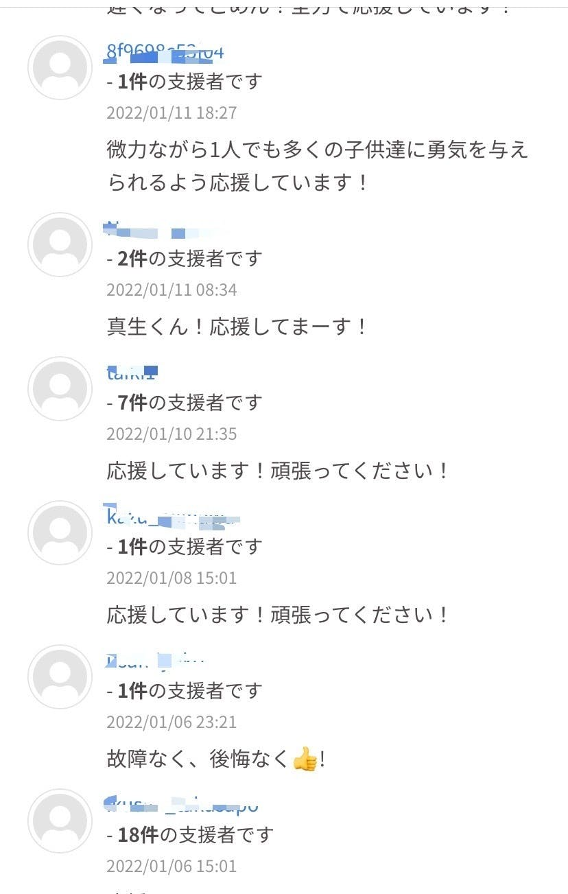 たくさんの応援メッセージも頂き、無事達成することができました!