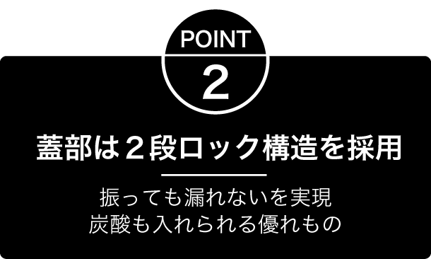 おもいっきり振っても、しっかり密閉されているので、非常に漏れにくい構造となっています